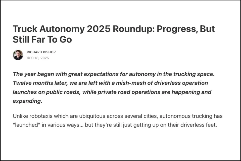 Truck Autonomy 2025 Roundup: Progress, But Still Far To Go